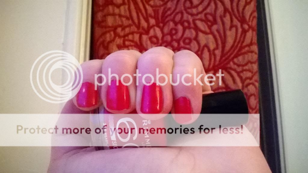 De nagellak ziet er heel mooi en glanzend uit. Je moet best wel 2 laagjes aanbrengen omdat hij met 1 laagje toch nog een beetje doorzichtig is en niet zo lang mooi blijft. Of de nagellak echt in 60 seconden droogt, mmh...niet echt, hij droogt wel snel, maar het duurt toch zo'n 2à3 minuten. De nagellak blijft 3 dagen mooi zitten.