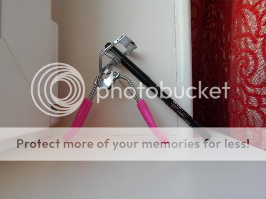 Als eerste heb je een wimperkruller en oogpotlood nodig, ik gebruik hier het Essence Long Lasting potlood in de kleur 01 Black Fever, maar je kan kiezen welke kleur je wil maar het effect is wel het beste met een zwart of bruin potlood of alleszins een donkere kleur. Je krult dus eerst je wimpers en dan ga je je ogen 'tightlinen', je gaat dus een lijntje maken op je bovenste waterlijn.
